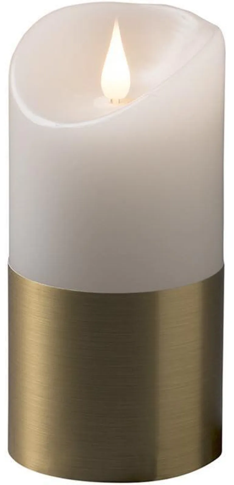 Konstsmide 1821-600 on LED-vahakynttilä 7,5×15,5 cm (valkoinen) messinkikoristeella. Ajastin 4/8 h 2xC.