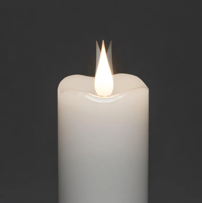 Konstsmide 1887-185 on pari kermanvalkoisia LED-vahakynttilöitä (valon väri lämpimän valkoinen). 5×10 cm, ajastin 4/8 h. 2xAAA, 2 kpl kynttilöitä.