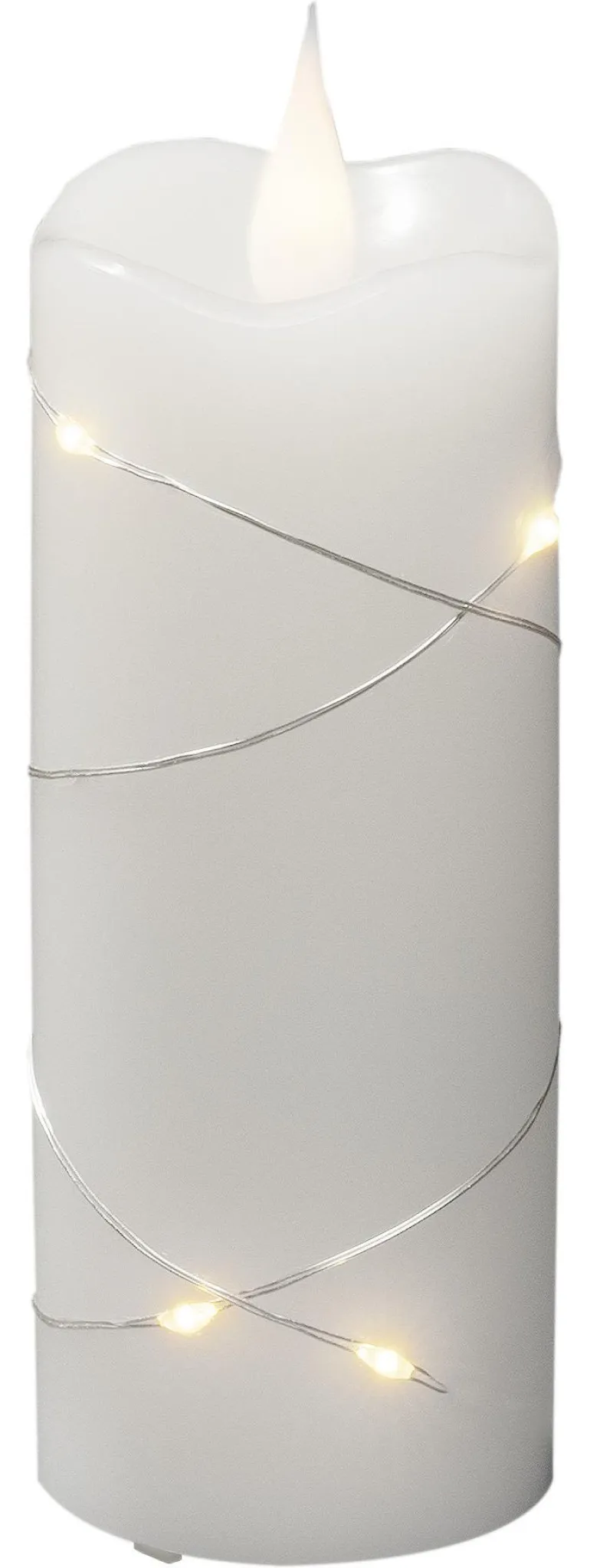 Konstsmide 1826-190 on valkoinen LED-vahakynttilä mikro-LEDeillä (lämpimän valkoinen), 5×17,8 cm. Ajastimella 4/8 h, 2xAA.