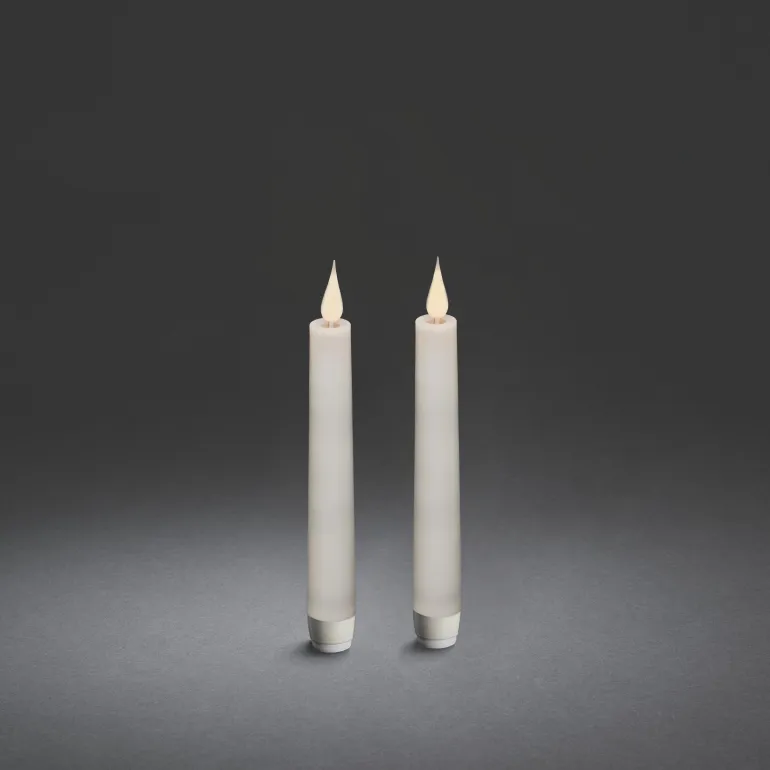 Konstsmide 1872-210 on pari valkoisia LED-kynttilöitä (3D-liekillä). Mukana kaukosäädin.