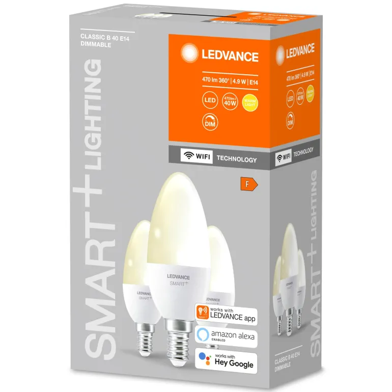 Kruunukynttilän muotoinen, himmennettävä LED-lamppu. Langaton älykäs valaistustoiminto, jota ohjataan WiFi-verkkoprotokollalla. Helppo asentaa ja käyttää. WiFi-tuotteiden etuna aikaisempiin älykkäisiin järjestelmiin verrattuna on se, että et enää tarvitse lisäyhdyskäytävää valonlähteiden integroimiseen. Voit käyttää vain omaa reititintä, joka on jo asennettu.