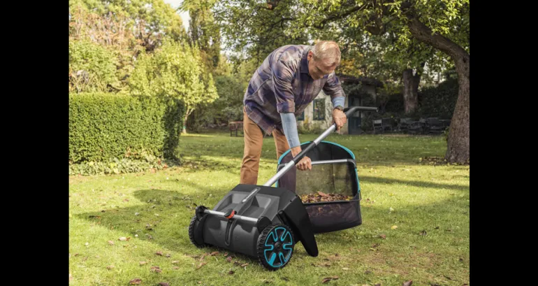GARDENA 3565-20 on lehtienkerääjä, joka kerää helposti lehtiä, leikkuujätettä ja muuta. Nurmikolla ei saa olla lehtiä, jotta se saa ilmaa, mutta lehtien haravoiminen voi olla tylsää ja työlästä. Tämä ainutlaatuinen GARDENA-lehtien- ja ruohonkerääjä suoriutuu tehtävästä nopeasti ja mukavasti, eikä sinun tarvitse kumarrella! Kaikki maassa olevat lehdet kerätään lähes äänettömästi erikoisharjojen ansiosta. Kerääjässä ei ole moottoria, joten se toimii lihasvoimallasi. Näin säästät energiaa ja teet tietoisen, kestävän päätöksen. Kerääjän korkeutta voi säätää helposti pinnan mukaan, jolloin saat kerättyä kaiken. Ergonomisesti muotoillun työntöaisan ansiosta lehtienkerääjää on helppo ohjata nurmikolla. Kun keräyssäiliö on täynnä, se on helppo irrottaa tyhjentämistä varten ja kiinnittää takaisin paikolleen. Kun työ on tehty, kerääjä voidaan säilyttää tilaa säästävällä tavalla.
