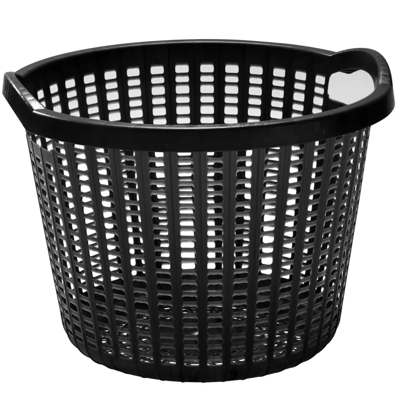 Ruotsalainen 55 litran musta muovinen lehtikori, jossa on kaksi tukevaa kahvaa PP-muovista.
