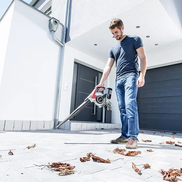 Akkukäyttöinen lehtipuhallin, mukana 2 putken jatkokappaletta. Lehtipuhaltimen ilmannopeus on 115-250 km/h ja virtausnopeus 330m3/h. Ilmavirtaa voi säätää helposti säätöpyörällä, jota voidaan käyttää työn aikana. Käyttöaika 40 min yhdellä latauksella.