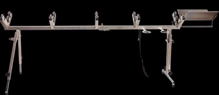Sähkösinkitty työpöytä halkaisijaltaan 80-400 mm:n spiraaliputkien leikkaamiseen. Säädettävä työkorkeus 85-110 cm. Neljä työkalutelinettä. Kokoontaittuva – helppo kuljettaa Pituus kokoontaitettuna 107cm, pituus avattuna 240 cm. Paino 17 kg.