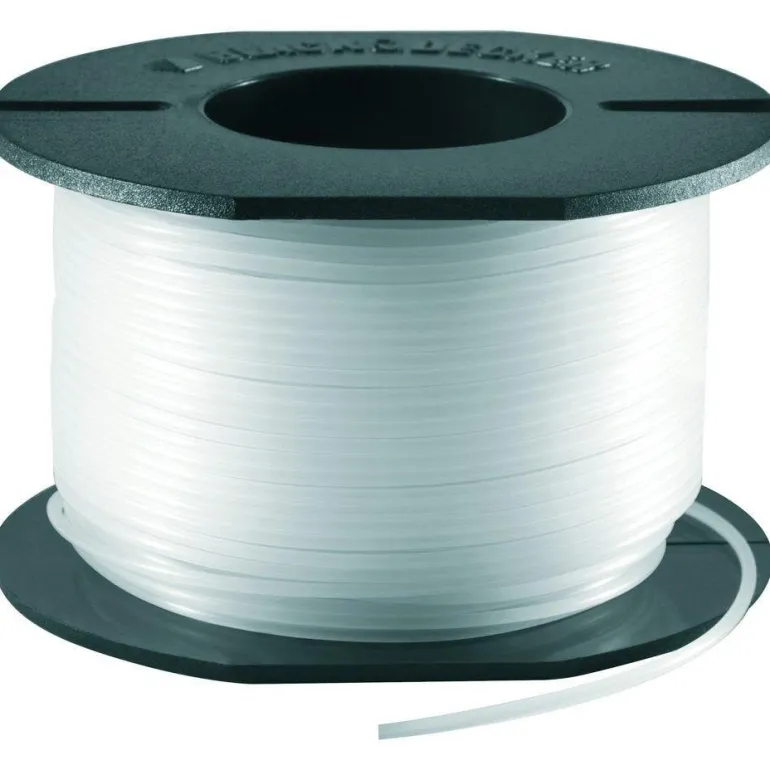 37, 5 m pitkä trimmerilanka kelassa, halkaisija 1,5 mm. Lanka sopii kaikkiin Black & Decker ruohonleikkureihin paitsi GL650, GL660, GL670