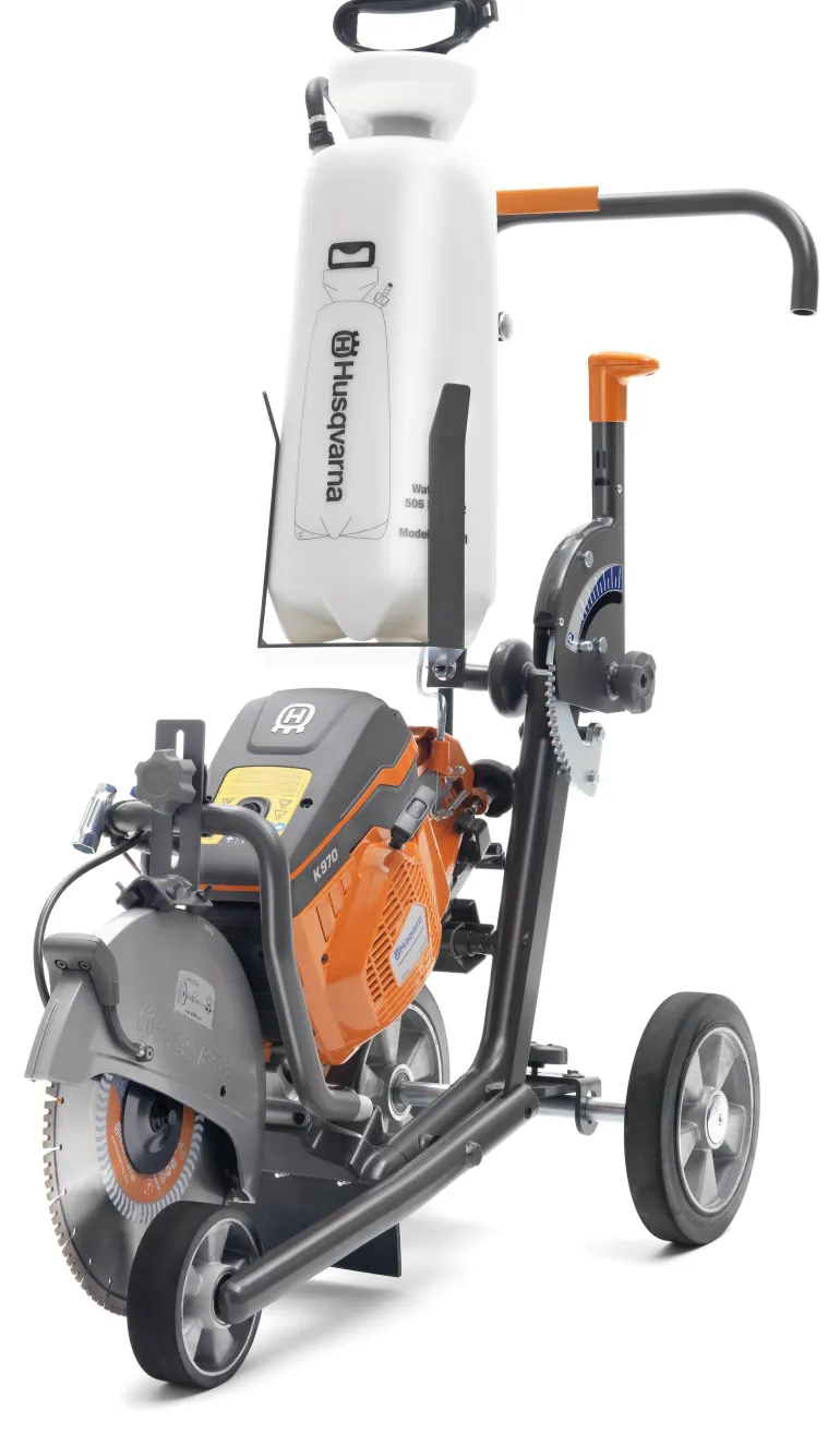Husqvarnan leikkuuvaunut on suunniteltu erityisesti Husqvarnan kannettaville bensiinikäyttöisille laikkaleikkureille. Pikakiinnikkeet helpottavat leikkurin kiinnittämistä vaunuun, ja leikkuusyvyyttä on helppo säätää. Leikkuuvaunun avulla on helppo leikata suoraan tai terä kallistettuna sekä seinien että reunakivien vierestä. Kompakti kone on helppo taittaa kokoon kuljetusta varten. Sopii malleille Husvarna K970 ja K1270. Toimitetaan manuaalisella painevesisäiliöllä.