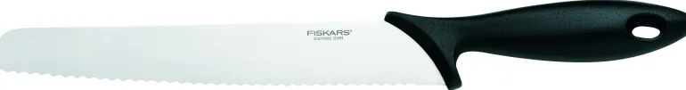 Fiskars Essential-leipäveitsen terä on valmistettu japanilaisesta ruostumattomasta teräksestä, ja sen mustassa muovikahvassa on hitusen rosoinen viimeistely. Pitkässä mutta jämäkässä leipäveitsessä on sahalaitainen terä, jolla paloittelet hetkessä kovakuorisimmankin leivän. Voidaan teroittaa Fiskarsin Roll-Sharp™-veitsenteroittimella.