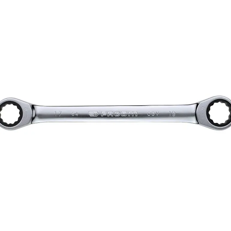 Facom 64.17X19 on suora kiintolenkkiavain, räikkätoiminto. Avainkoot 17 mm ja 19 mm. Räikkäkulma 5°.