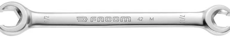 Facom 42.11/16X3/4 on avosilmukka-avain, taivutettu 15°, 6-kulmainen silmukkapää, oteleveys 11/16 x 3/4″ (vrt. 17 x 19 mm).