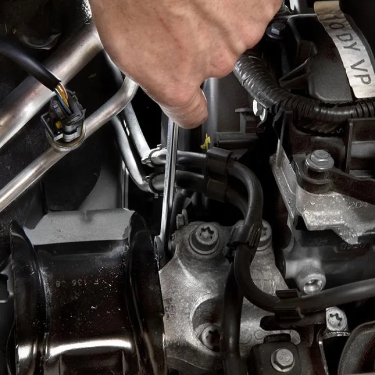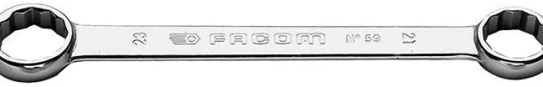 Facom 59.27X29 on lyhyt kiintolenkkiavain, ohut pää, oteleveys 27 x 29 mm. OGV-profiili ja 12-kulmainen silmukkapää voimakkaaseen kiristämiseen.