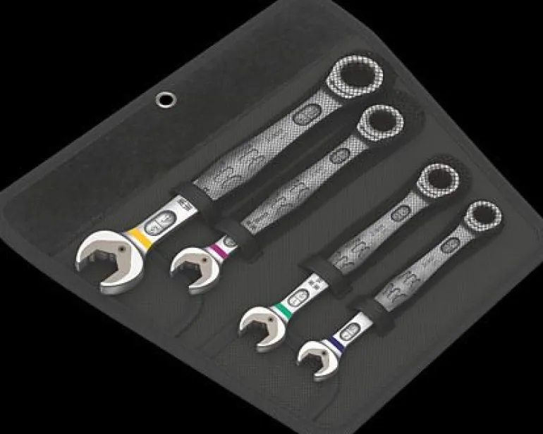 Räikkälenkkiavainsarja sisältää 4 erikokoista räikkäavainta. Toimitetaan kätevässä tekstiilokotelossa.