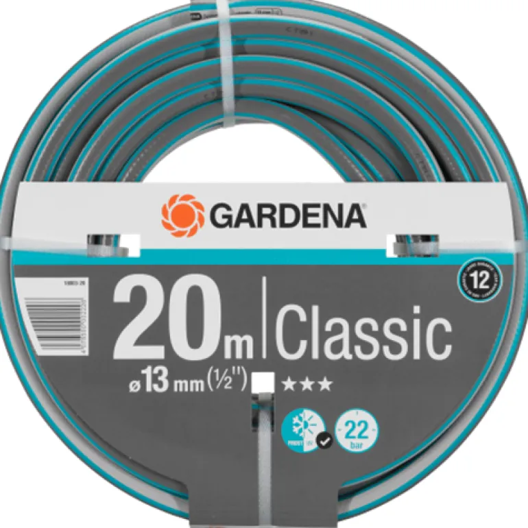GARDENA Classic on paineenkestävä 20 m:n letku, jonka halkaisija on 13 mm. Letku säilyttää muotonsa laadukkaiden materiaalien ansiosta, ei sisällä haitallisia pehmentimiä (ftalaatteja) eikä raskasmetalleja ja kestää UV-säteilyä. Tarvittaessa letkua voi täydentää järjestelmällisesti alkuperäisillä GARDENA-järjestelmän osilla ja liittimillä. Nämä ovat parhaat edellytykset letkun mukavalle ja joustavalle käytölle puutarhassa.