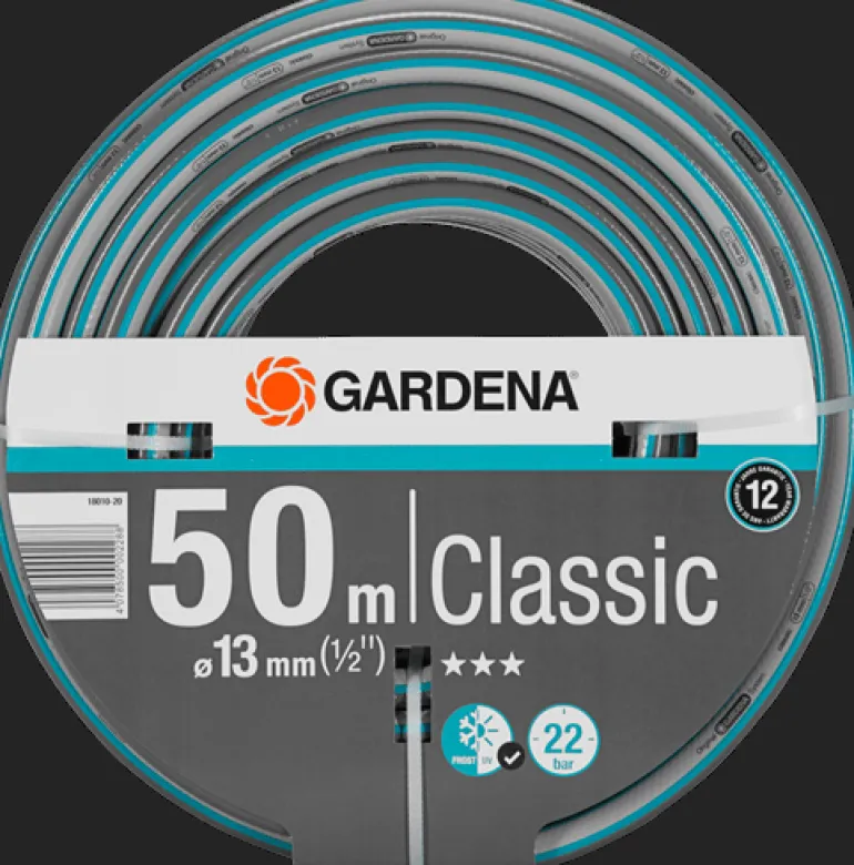 GARDENA Classic on 50 m pitkä, paineenkestävä letku, jonka halkaisija on 13 mm ja joka säilyttää muotonsa korkealaatuisten materiaalien ansiosta. Letku ei sisällä haitallisia pehmentimiä (ftalaatteja) eikä raskasmetalleja ja kestää UV-säteilyä. Tarvittaessa letkua voi täydentää järjestelmällisesti alkuperäisillä GARDENA-järjestelmän osilla ja liittimillä. Nämä ovat parhaat edellytykset letkun mukavalle ja joustavalle käytölle puutarhassa.