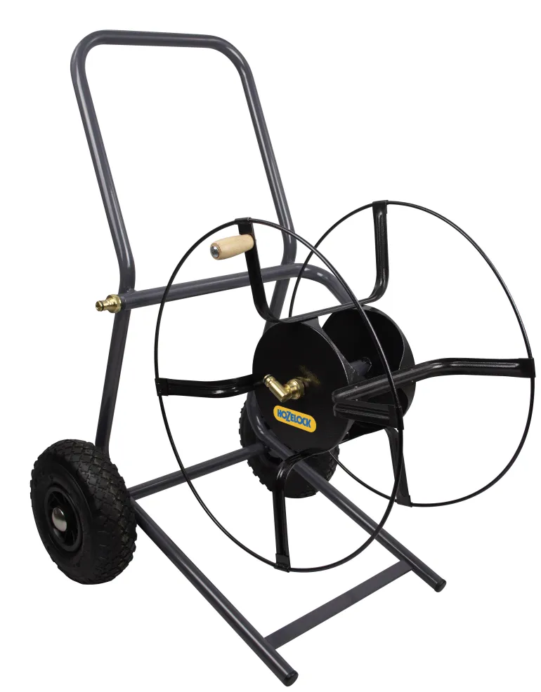 Letkukärry, jossa harmaa teräsrunko ja musta teräsrumpu. Mustat kumipyörät, jotka helpottavat siirtämistä myös epätasaisilla pinnoilla. Korroosiota kestävät kupariliittimet. Puinen kahva, joka mahdollistaa helpon sisäänkelauksen. Kapasiteetti 120 m (15 mm letkua).
