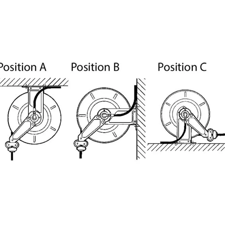 - Letkun ohjausvarret voidaan kiinnittää kolmeen eri asentoon letkukelan asennustavan mukaan