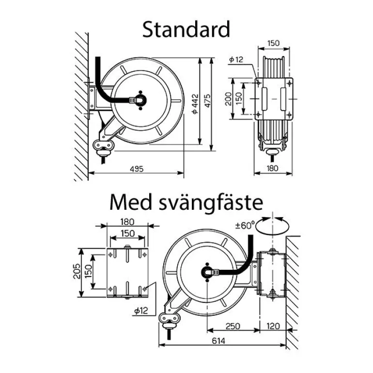 8 metrin letkukela, letkun halkaisija Ø 19 mm, työpaine 18 bar. Suunniteltu nesteiden jakeluun, esim. dieselpolttoaine, öljy, urealiuokset (AdBlue), jäätymisenestoneste, puhdistusaineiden tai desinfiointiaineiden vesipohjaiset liuokset.
