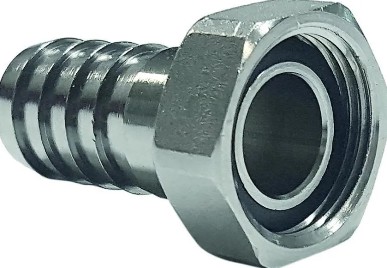 Letkuliitin sisäkierteellä. Letkulle, jonka sisähalkaisija on 14 mm. Kromattu.