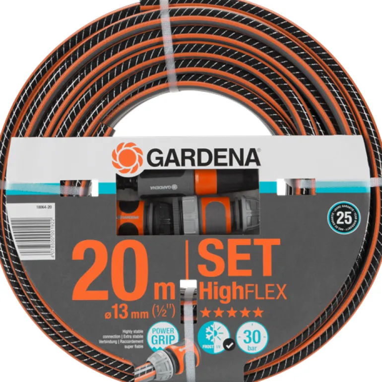 GARDENA Comfort HighFLEX on kätevä letkusarja, joka sisältää GARDENA Comfort HighFLEX -letkun 20 m (Ø 13 mm) sekä erilaisia GARDENA-järjestelmän osia. Power Grip -profiili takaa täydellisen liitännän letkun ja letkunliittimen välille. Letku kestää painetta ja säilyttää muotonsa laadukkaan spiraalimaisen verkkokankaan ansiosta, jossa kaksi spiraalia vaikuttaa vastakkaisiin suuntiin, mutta on silti käytössä joustavampi kuin Comfort FLEX -letku. Tämä johtuu spiraalien suuremmasta tiheydestä, mikä tekee letkusta joustavamman ja helpottaa sen käsittelyä. Letku ei mene solmuun eikä kierry, ei sisällä haitallisia pehmentimiä (ftalaatteja) eikä raskasmetalleja ja kestää UV-säteilyä.