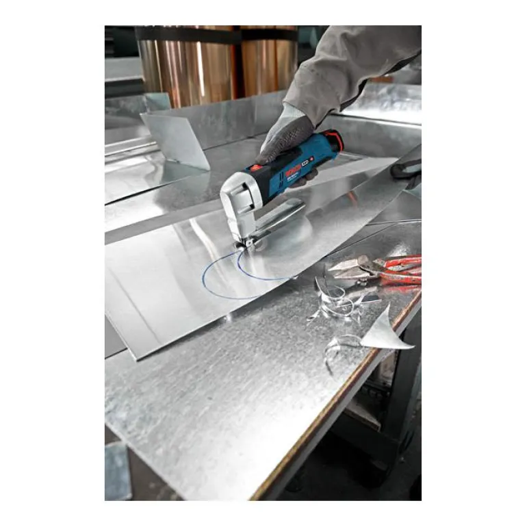 10,8 V:n levyleikkuri, joka leikkaa vaivatta enintään 1,3 mm:n metallia. Keveys ja kompakti rakenne helpottavat käyttöä.