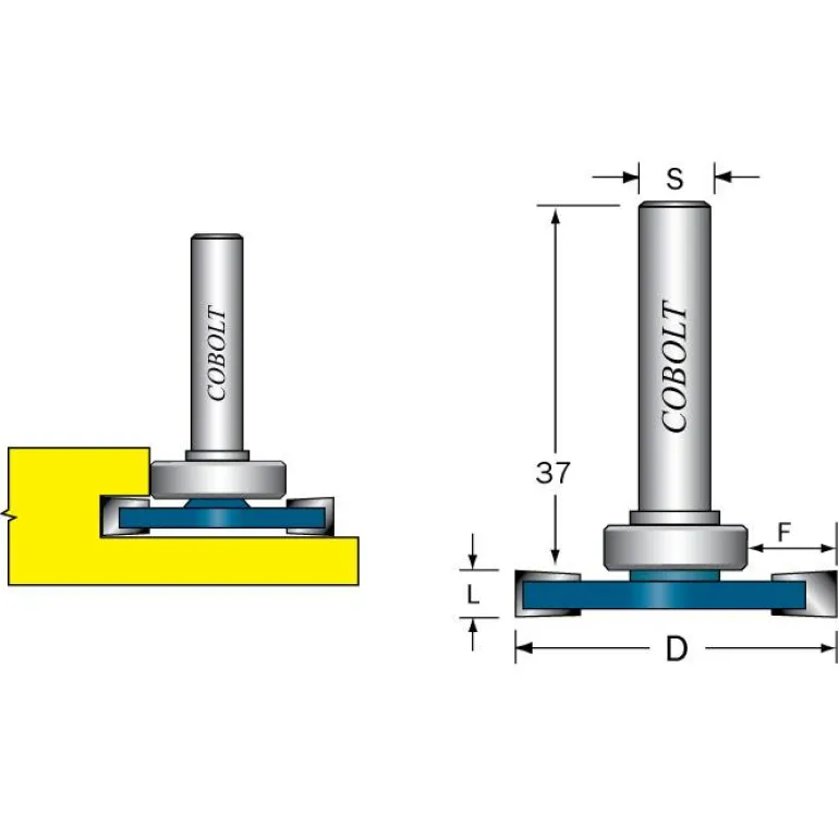 Cobolt 213-5010 Levyurajyrsin L=5 / F=10, D=36, S=8mm. Tasainen alapuoli ja ohjauslaakeri M-168.