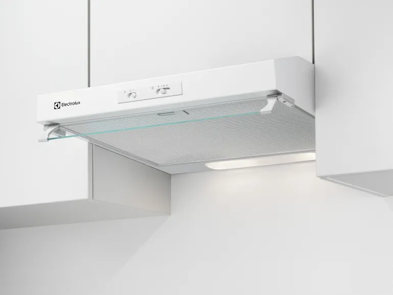 Electrolux LFU326W on 300-sarjan liesituuletin kahdella vaihtoehtoisella käyttötavalla: asennus hormiin tai kiertoilmatoimisena. Aktiivihiilisuodatin lisävarusteena. 300 ExtractionTech Standard -liesituuletin poistaa ruoanvalmistuksen hajut keittiöstäsi tehokkaasti varmatoimisella moottorillaan. Nauti miellyttävän raikkaasta ilmasta aina ruokaa valmistaessasi. Liesituuletin sisältää varmatoimisen moottorin, joka poistaa hajut tehokkaasti aterioita valmistaessa. Keittiösi säilyy raikkaana ja puhtaana ja ruoanvalmistus sujuu mukavammin joka päivä. Pure Illumination -valaistus tarjoaa intensiivisen ja kestävän valaistuksen, joka takaa täydellisen näkyvyyden ruoanlaiton aikana. Energiatehokkaat LED-valot valaisevat koko keittotason, joten aterian valmistuksen kaikki yksityiskohdat on helppo nähdä. Liesituulettimessa on käteväksi suunniteltu ja luotettava rasvasuodatin, joka on helppo puhdistaa käsin tai astianpesukoneessa, jolloin keittiösi pysyy raikkaana ja liesituuletin toimii parhaalla mahdollisella tavalla. Tuulettimen ohjaus liukukytkimellä. Kolme tehotasoa.