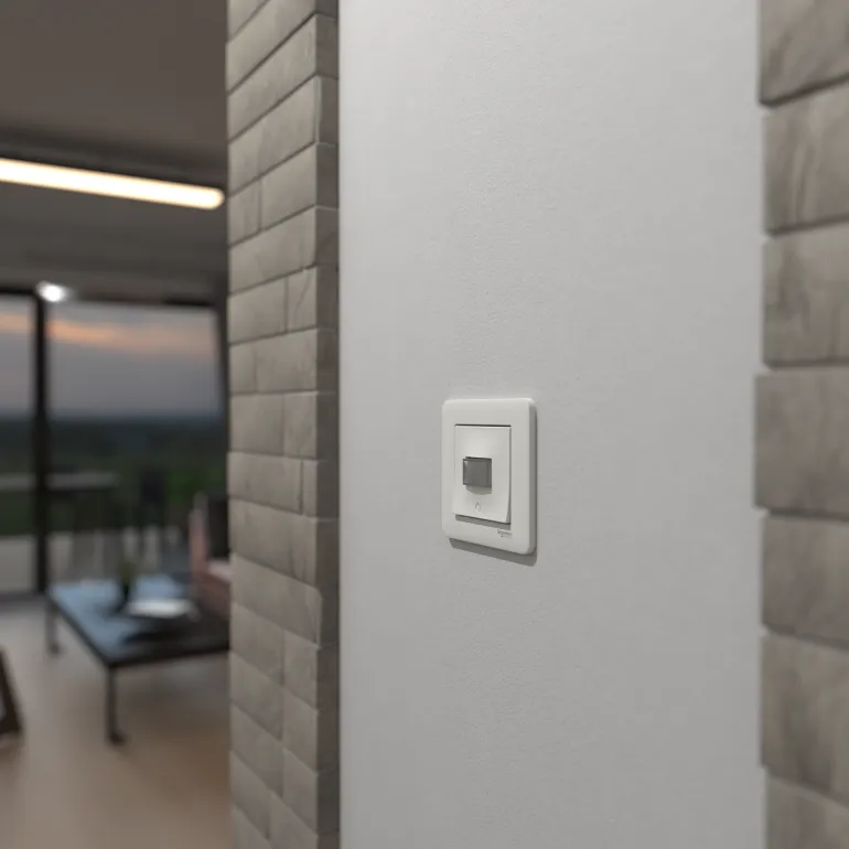 Yhdistetty Wiser Exxact -liiketunnistin 10 A Zigbee-ohjauksella ja sisäänrakennetulla painikkeella 10 A. LED 200 W, 2200 W R-kuormat, 2000 W halogeeni 230 V, elektroninen muuntaja 1050 VA, 500 VA perinteinen muuntaja, 1000 VA moottorin kuormitus. Tarvitsee nollajohtimen. Wiser-sovelluksella voidaan valita erilaisia ajanhallinnan vaihtoehtoja, kuten ohjelmoitava viikoittainen ohjaus, aikataulutus ja astro-ohjaus. Uppoasennukseen kojerasiaan c/c 60 mm, pinta-asennukseen käytetään 35 mm:n rasiaa. Tarvitset Wiser-keskusyksikön, e-nro 17 240 04, jotta voit käyttää liiketunnistinta Wiser-sovelluksen kautta. Sovelluksen kautta voit käyttää liiketunnistinta mobiililaitteella tai tabletilla. Asetukset tehdään sovelluksen kautta. Kommunikoi Zigbee 3.0:n kautta. Täydennettävissä millä tahansa Exxact-kehyksellä.