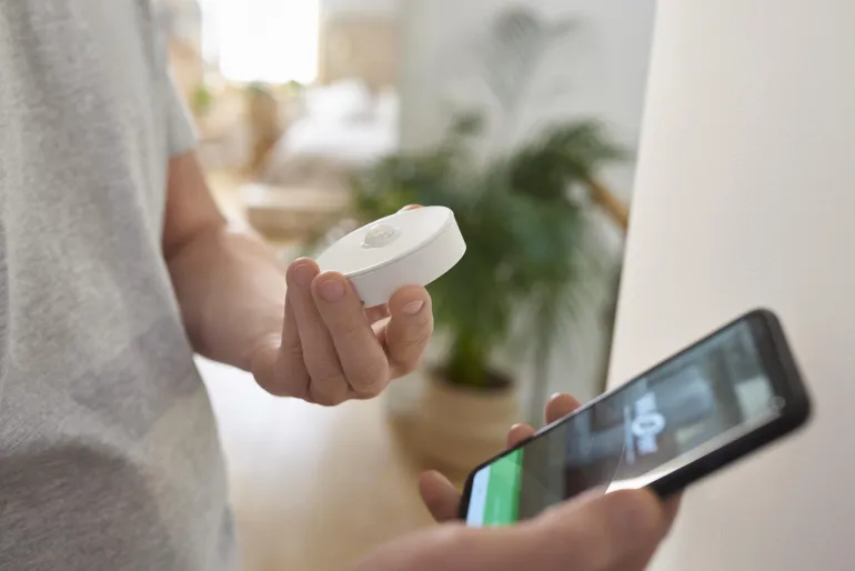 360 °-liiketunnistin lisää turvallisuutta ja mukavuutta sekä säästää energiaa havaitsemalla läsnäolon ja kirkkautensa havaintoalueellaan. Kun esimerkiksi ketään ei ole lähellä, huoneen valaistus sammuu.