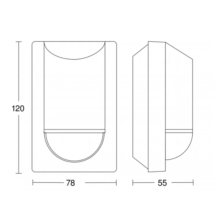 Liiketunnistin, tyypin IR-anturi, täysin automaattinen toiminto valaisimen kytkemiseksi päälle / pois päältä. Sopii seinäasennukseen, herkkä monilinssillä, jota voidaan kääntää havainnointialueelle 5 tai 12 metriä. Anturin tunnistuskulma on 180 astetta, joten tunnistin sopii myös suurten pintojen valvontaan. Piilotetut säätimet hämärätason ja valaisuajan asettamiseen. Enimmäiskuormitus on neljä LED-liitäntälaitetta.