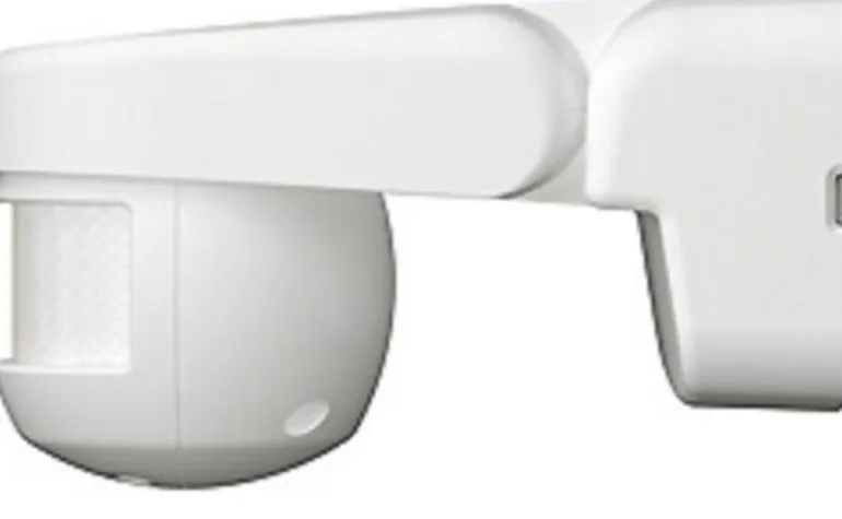 PIR, liiketunnistin ulkoasennukseen IP55. Havaitsee tarkkailualueella liikkuvat lämmönlähteet (passiivinen infrapunatekniikka) ja voi esimerkiksi sytyttää lampun tietyksi ajaksi.