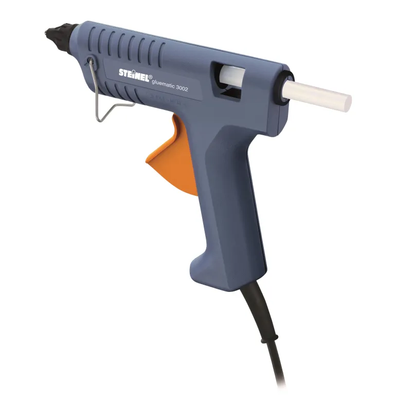Kuumaliimapistooli, jossa on elektroninen lämpötilan säätö ja liimatangon mekaaninen syöttö. Korkean sulatuslämpötilan (200 astetta) ansiosta liima virtaa paremmin ulos ja tartuntakyky kasvaa.