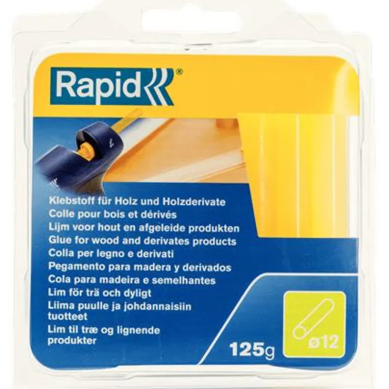 Rapid-liimapuikot puun liimaukseen. Sopii useimpien puutyyppien, lautojen ja levymateriaalien liimaukseen. Korkealaatuinen koostumus EVA- ja hartsimateriaaleissa tekee liimaustuloksesta hyvän.