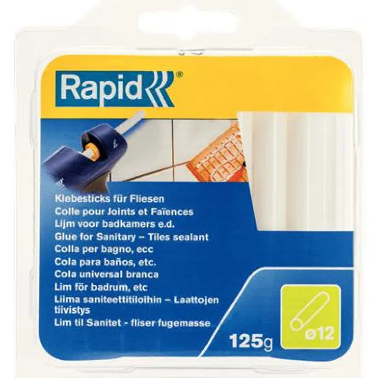 Rapid valkoiset liimapuikot saniteettitiloissa tehtäviin liimauksiin. Soveltuu kaakelien ja muiden materiaalien saumaliimaukseen saniteettitiloissa. Korkealaatuinen koostumus tekee liimaustuloksesta hyvän.
