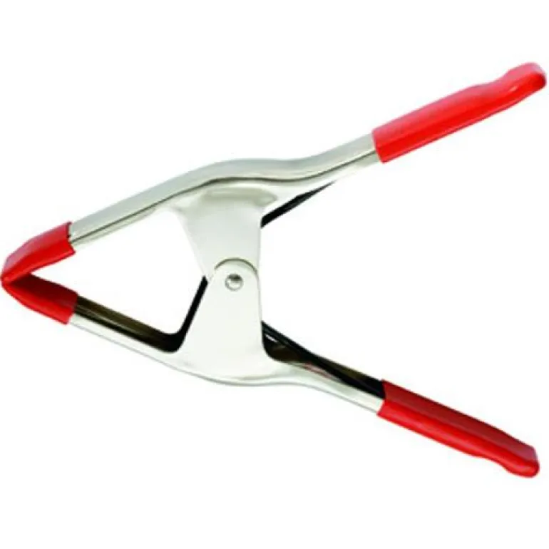 Vahva metallinen liimapuristin metallijousella sekä kumitetuilla tyynyillä, mitkä takaavat paremman otteen ja suojaavat työkappaletta. Kestää korroosiota nikkelipinnoituksen ansiosta.