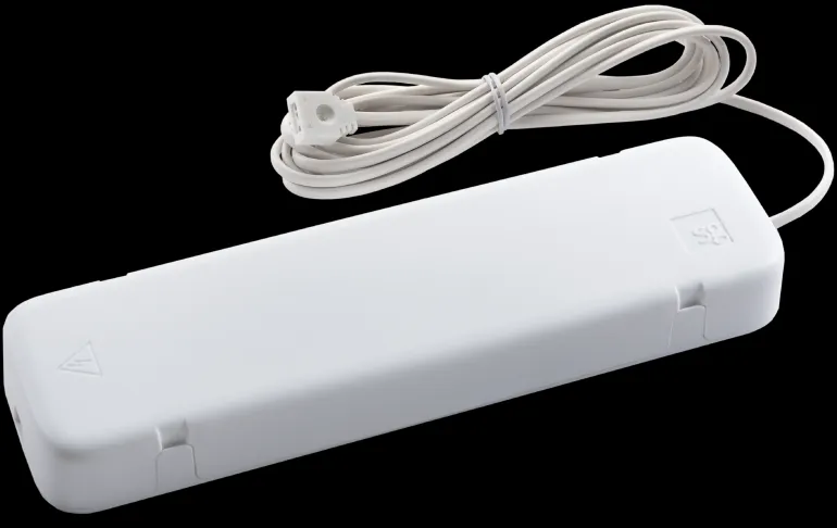 Valkoinen 1-10V/Push Dim -liitäntälaitesarja Slimline LED-nauhalle. Lähtöteho 20 W, jännitteelle 230 V. Suojausluokka IP20.