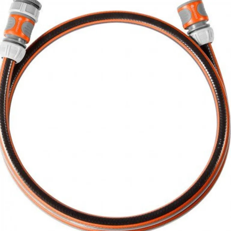 Liitäntäletku Original GARDENA -järjestelmän liittimiin, kuten kahteen mukana toimitettavaan vakioletkuliittimeen ja yhteen hanaliittimeen. Letkun vakiopituus on 150 cm, ja se on FLEX-letku, jonka halkaisija on 13 mm (1/2″) ja paineenkesto 25 baaria.