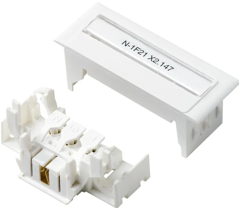 Push-in-liitäntälohko merkintäikkunalla. Työkaluton vedonpoisto saapuvalle ja lähtevälle kaapelille maks. 3 x 2,5 mm².