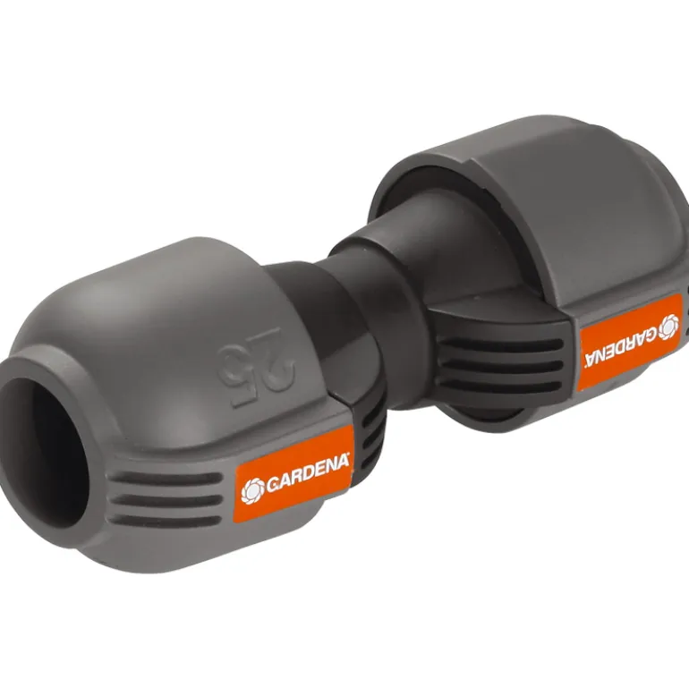 25 mm:n liitin on osa GARDENA-sadetinjärjestelmää, ja sitä käytetään runkoputken helppoon jatkamiseen. Patentoidun Quick & Easy -liitostekniikan ansiosta putkisto voidaan koota ilman työkaluja.