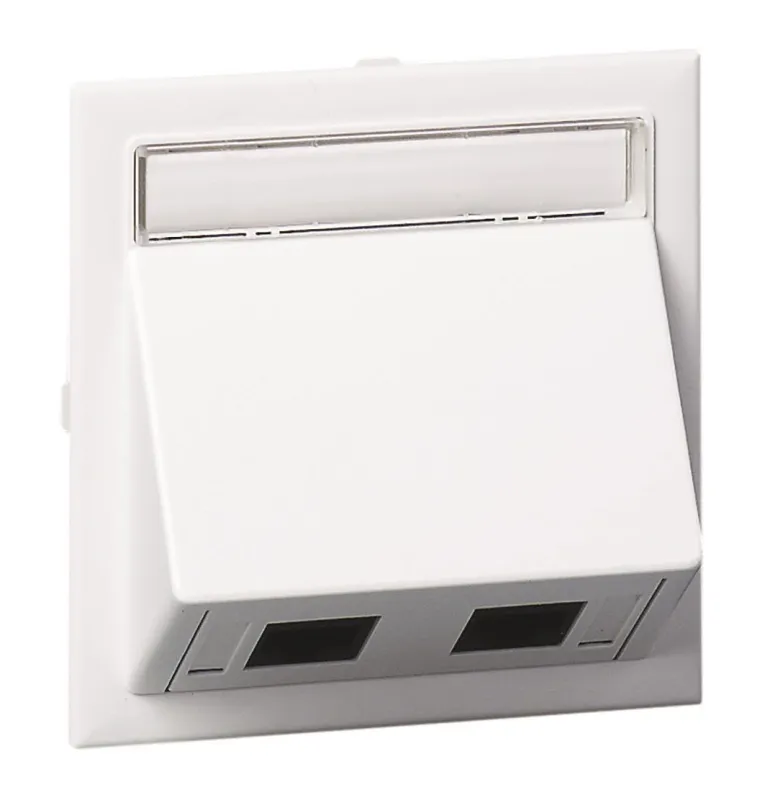 Liitinsarja F80-etuaukkoon asennusta varten. Sisältö: Viistetty kansi, kontaktialuslevy, kehys ja suojattu liitin Actassi/LexCom Cat6. Tarkoitettu kahdelle liitännälle.