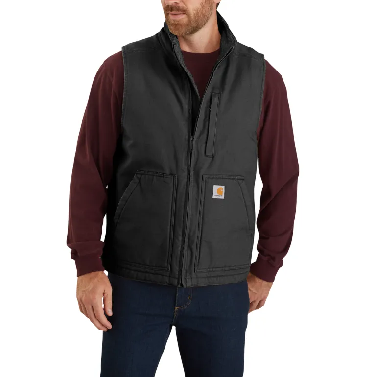 Vuorattu liivi, jossa vetoketju, kaksi etutaskua ja kolminkertaiset pääsaumat.