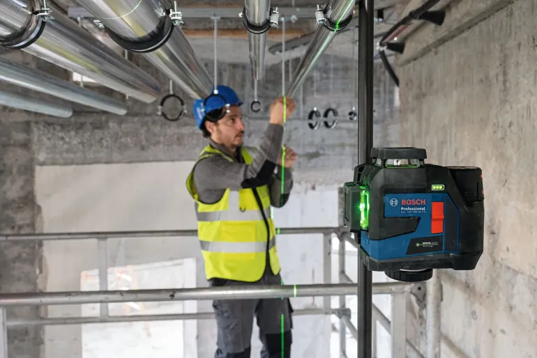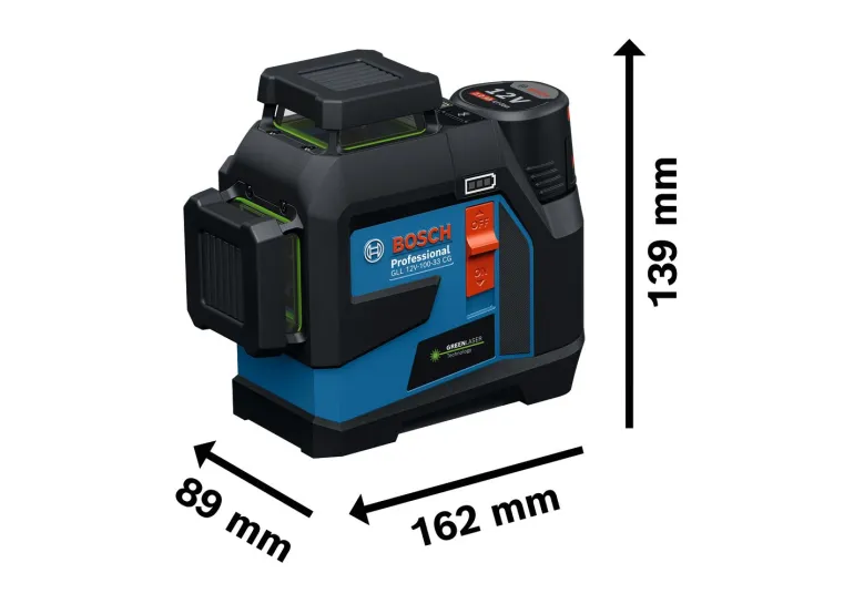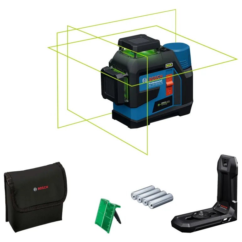 Siinä on kolme 360 asteen linjaa samanaikaiseen vaaka- ja pystysuuntaiseen suuntaukseen, minkä ansiosta suurten tilojen kohdistustyöt onnistuvat helposti vain yhdellä laitteella. Työn nopeaa aloitusta varten GLL 12V-100-33 CG:n laservastaanotintila on aina aktivoituna. Valinnaisen LR 7 Professional -laservastaanottimen avulla voit pidentää kantaman 100 metriin (säde). Kirkkaanvihreät laserlinjat tarjoavat neljä kertaa paremman näkyvyyden kuin punaiset linjat, mikä takaa erinomaisen tarkkuuden kaikissa tehtävissä.