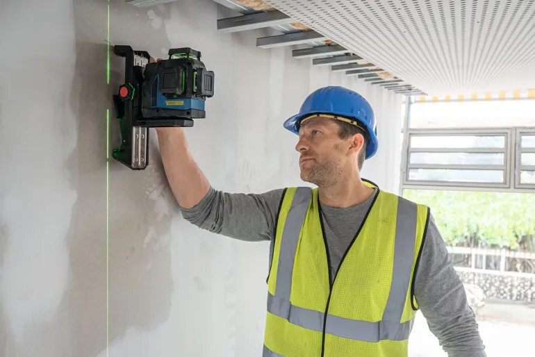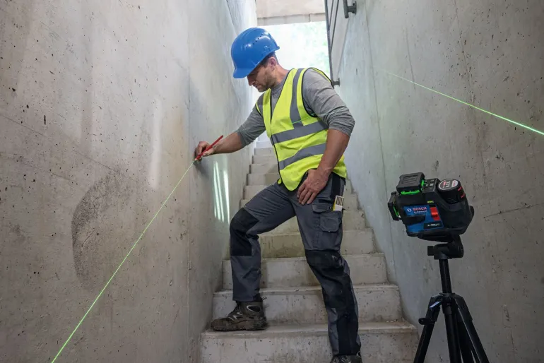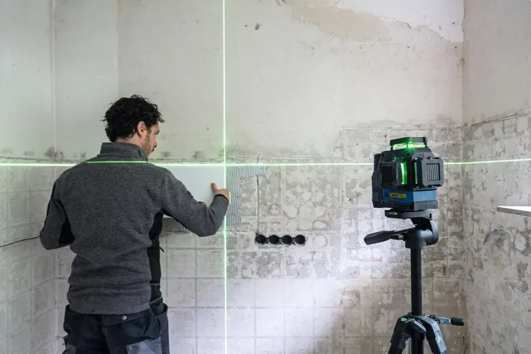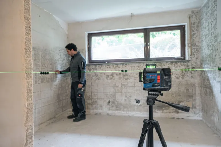 Helppokäyttöinen GLL 12V-100-33 CG on varustettu uudella, laserlinjan kätevän valinnan mahdollistavalla näppäimistöllä ja käyttömukavuutta parantavalla, suurella akun lataustason näytöllä. Linjalaser sopii erinomaisesti runkoseinien ja väliseinien, laatoitusten ja lattioiden asennustöihin sekä portaikkojen rakennustöihin.