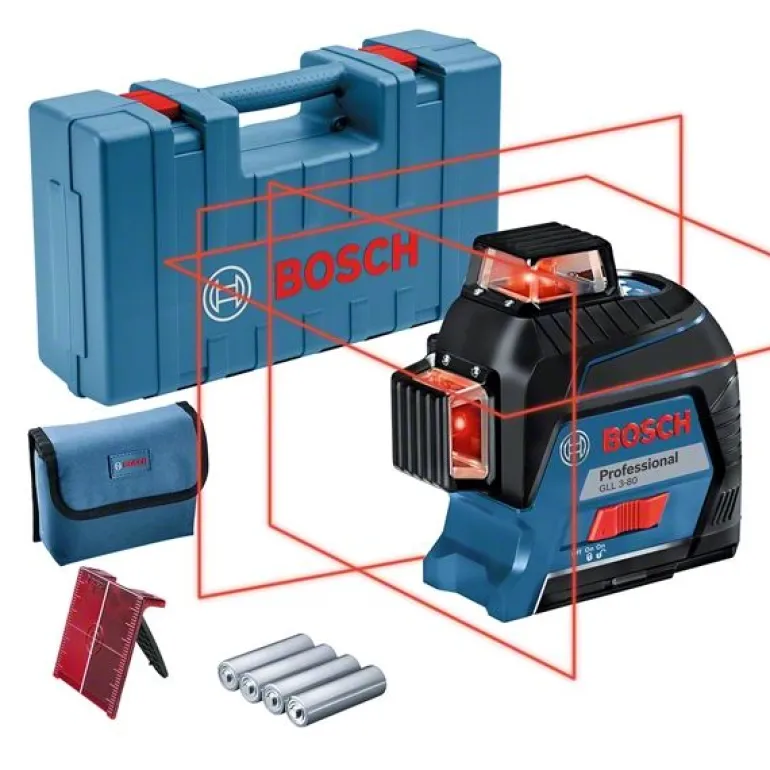 Linjalaser GLL 3-80 Professional heijastaa 3 erinomaisesti näkyvää 360° laserlinjaa. Erinomaisesti näkyvät laserlinjat heijastetaan huipputehokkailla diodeilla. Tämän työkalun kolme 360° laserlinjaa mahdollistavat samanaikaiset vaaka- ja pystysuuntaiset kohdistustyöt koko huoneessa ja siten entistä tehokkaamman työskentelyn. Helppokäyttöinen käyttöliittymä varmistaa erinomaisen käyttömukavuuden.