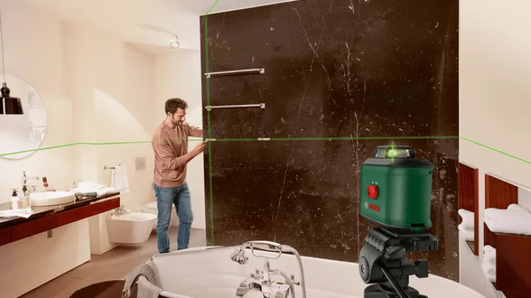 Bosch DIY UniversalLevel 360 on itsetasaava 360°:een linjalaser tarkkaan kohdistamiseen selkeästi näkyvällä laserlinjalla koko huoneessa. Tarkka, monipuolinen ja kätevä UniversalLevel 360 -linjalaser heijastaa selkeästi näkyvän laserinlinjan tarkkaan kohdistamiseen koko huoneessa. 360°:een vaakasuuntaisen ja 120°:een pystysuuntaisen laserlinjan itsetasaava projektio mahdollistaa kätevän ja nopean kohdistamisen. Laserteknologian vihreä valo parantaa huomattavasti näkyvyyttä ja varmistaa miellyttävän työskentelyn myös kirkkaassa valaistuksessa.