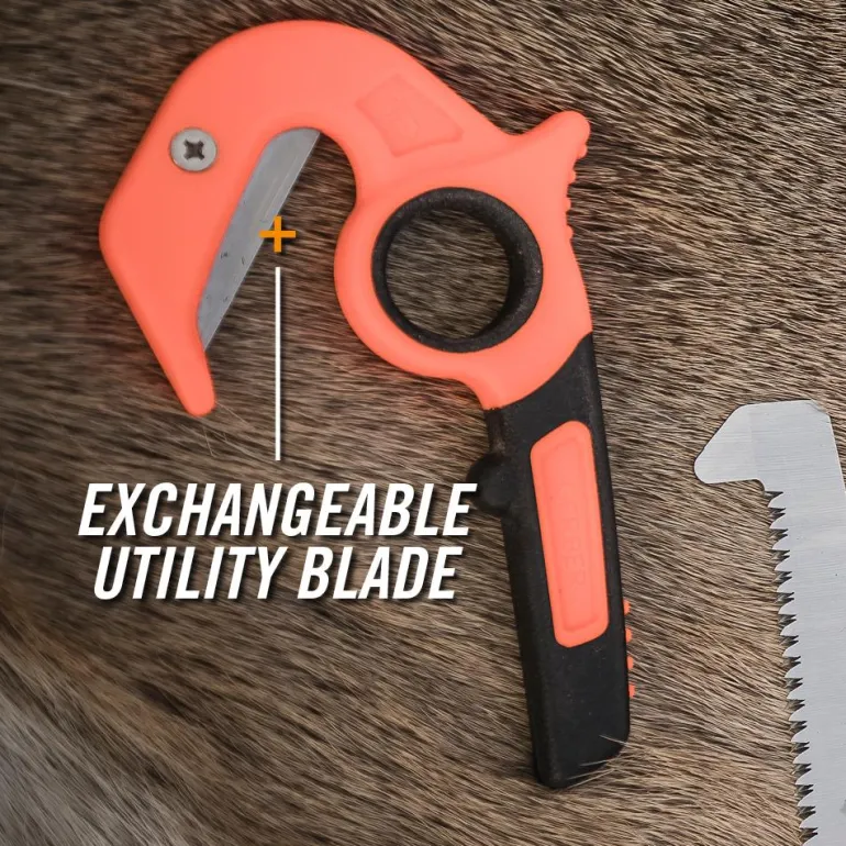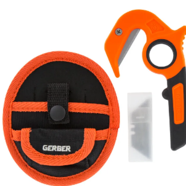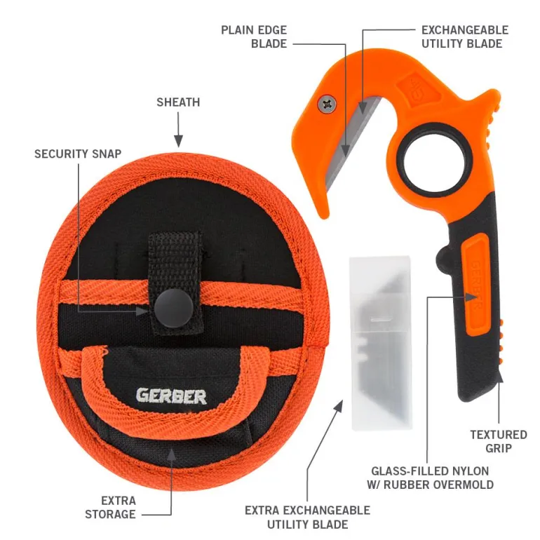 Yleisveitsi kartongille, remmeille, tekstiileille. Mukana kaksi lisäterää. Nylky- ja avauspuukko, jossa vaihdettava terä, mukana tuppi. Oranssi/musta kotelo.