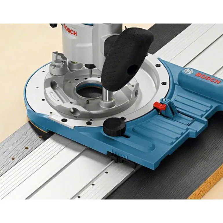 Lisäadapteri Bosch FSN OFA:han huonekalujen rakentamisessa tarvittavan 32 mm:n reikärasterijärjestelmän tekemistä varten.