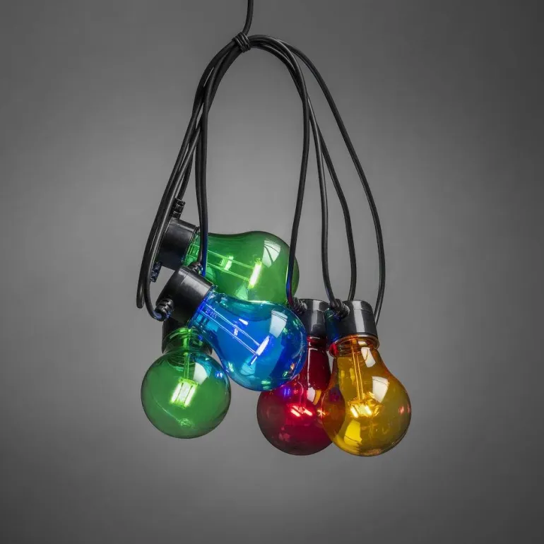 Konstsmide 2397-500 on lisäsarja Konstsmiden valosarjaan 2396 sisältäen 10 kappaletta erivärisiä LED-lamppuja (punainen, sininen ja keltainen). Lisäsarjalla voit jatkaa perussarjaa. Lisäsarjan pituus 9,15 m ja lamppujen väli 1 m.