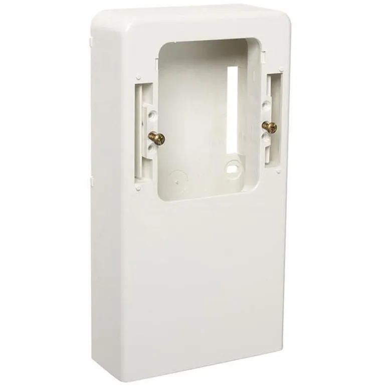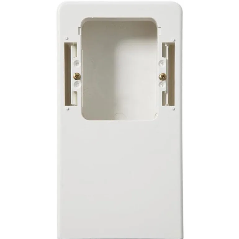Lämpömuovinen Lista-asennuskotelo pinta-asennukseen pystysuoraan. Malli on halogeeniton ja yhteensopiva kaikkien ELKO 1-bay upotettavien tuotteiden kanssa, kuten pistorasiat suurille ja pienille virroille. Kaapelireitityksellä ja kanavoinnilla. Pistorasian mitat ovat 34x89x170 mm.