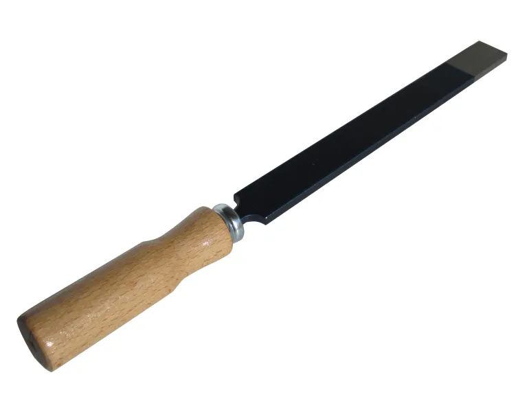 Erikoisteräksestä valmistettu kalvain, jossa on maalattu puukahva. Terän pituus 200 mm.