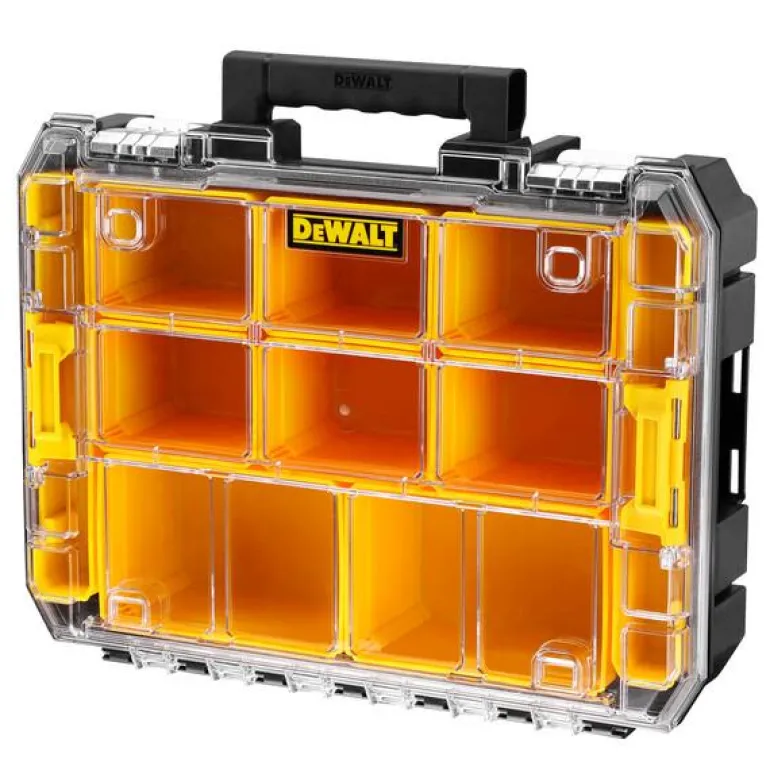 Lokerikko/säilytyslaatikko pienille osille ja lisävarusteille. Tilavuus 7,8 l. IP54-luokiteltu rakenne, joka suojaa vedeltä ja pölyltä ja pitää sisällön kuivana ja turvassa. Lähes tuhoutumaton läpinäkyvä polykarbonaattikansi, jonka kautta näkee sisällön helposti. Kestävä ergonominen kahva helppoa ja mukavaa kantamista varten. Ruostumattomasta teräksestä valmistetut metallisalvat takaavat laatikon kestävyyden ja pidemmän käyttöiän. Sivusalvat mahdollistavat laatikon yhdistämisen muiden TSTAK-moduulien kanssa. 2 isoa, 6 keskikokoista ja 2 pitkää lokeroa.